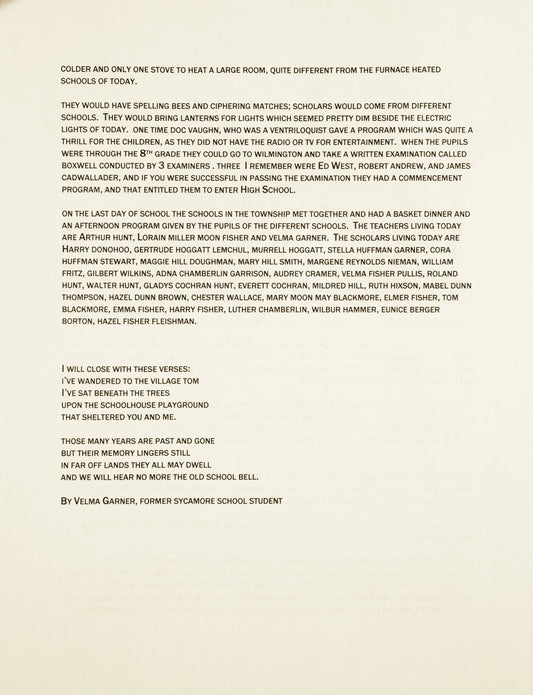 The Sycamore School was located on Sycamore Road halfway between Westboro Rd....