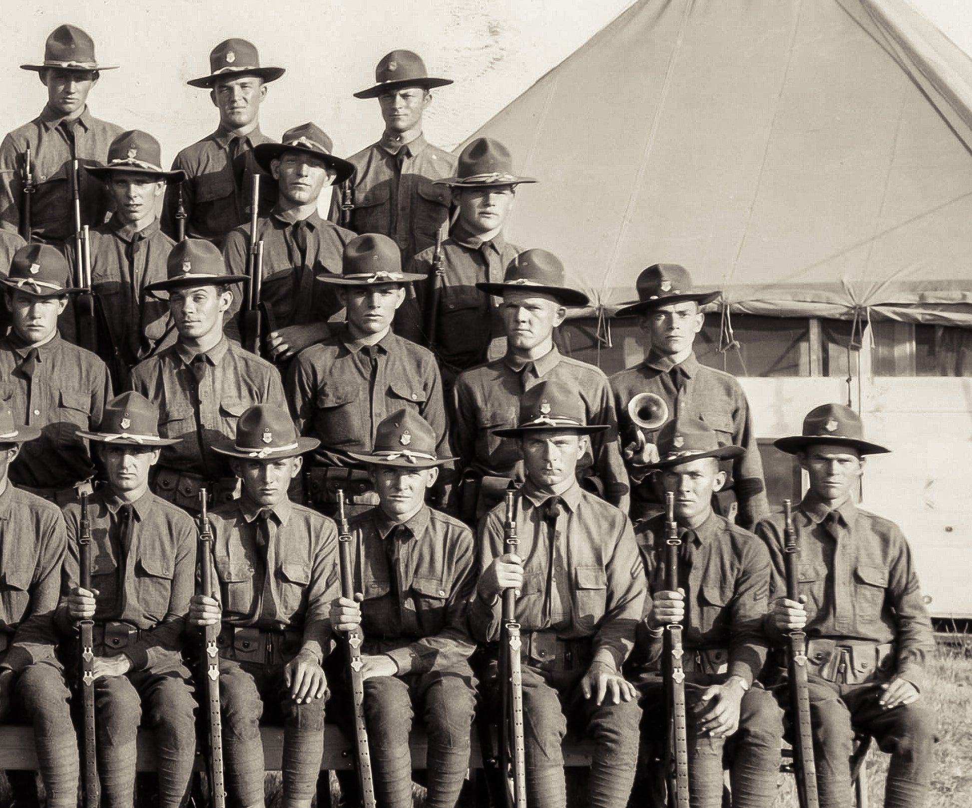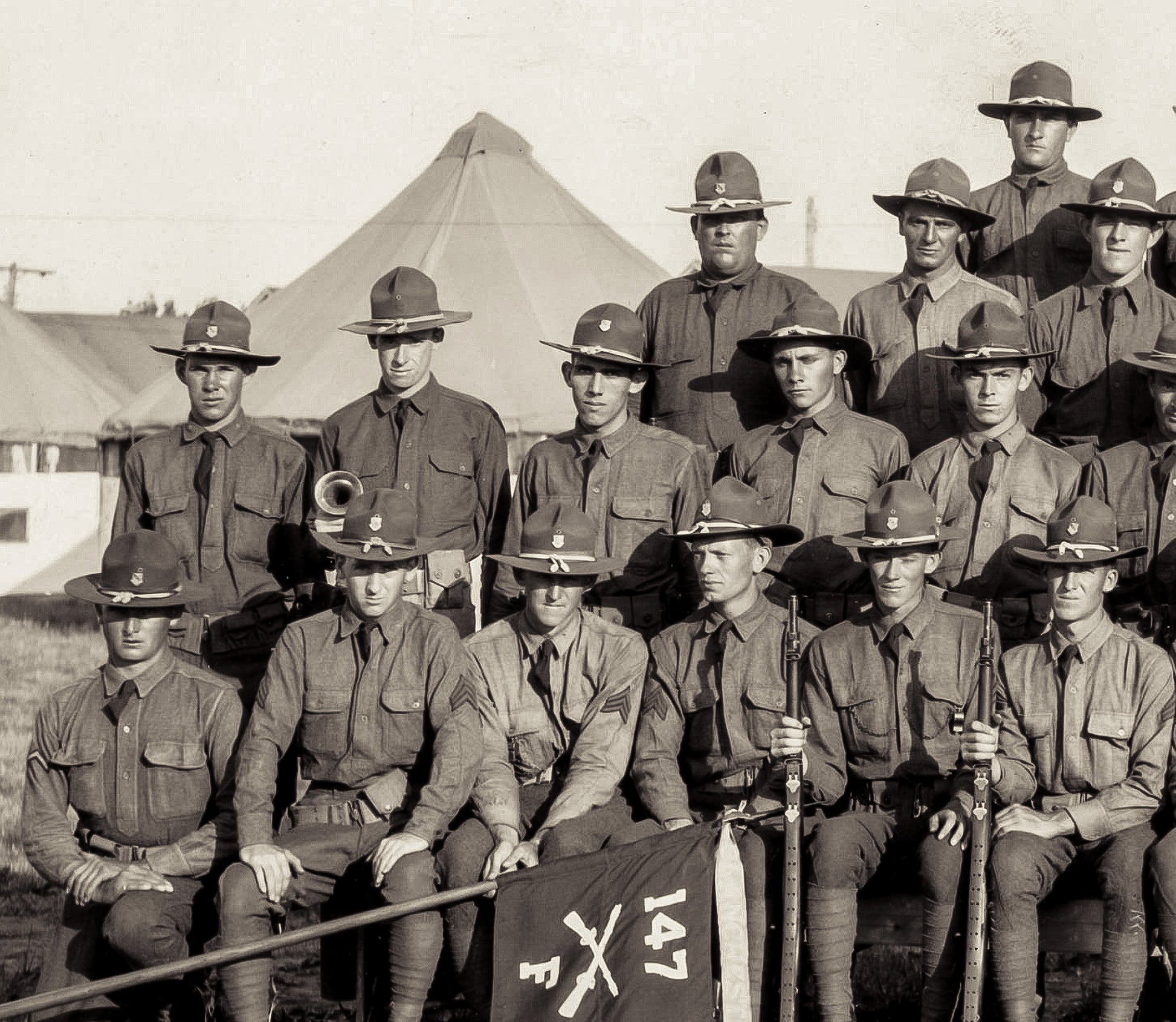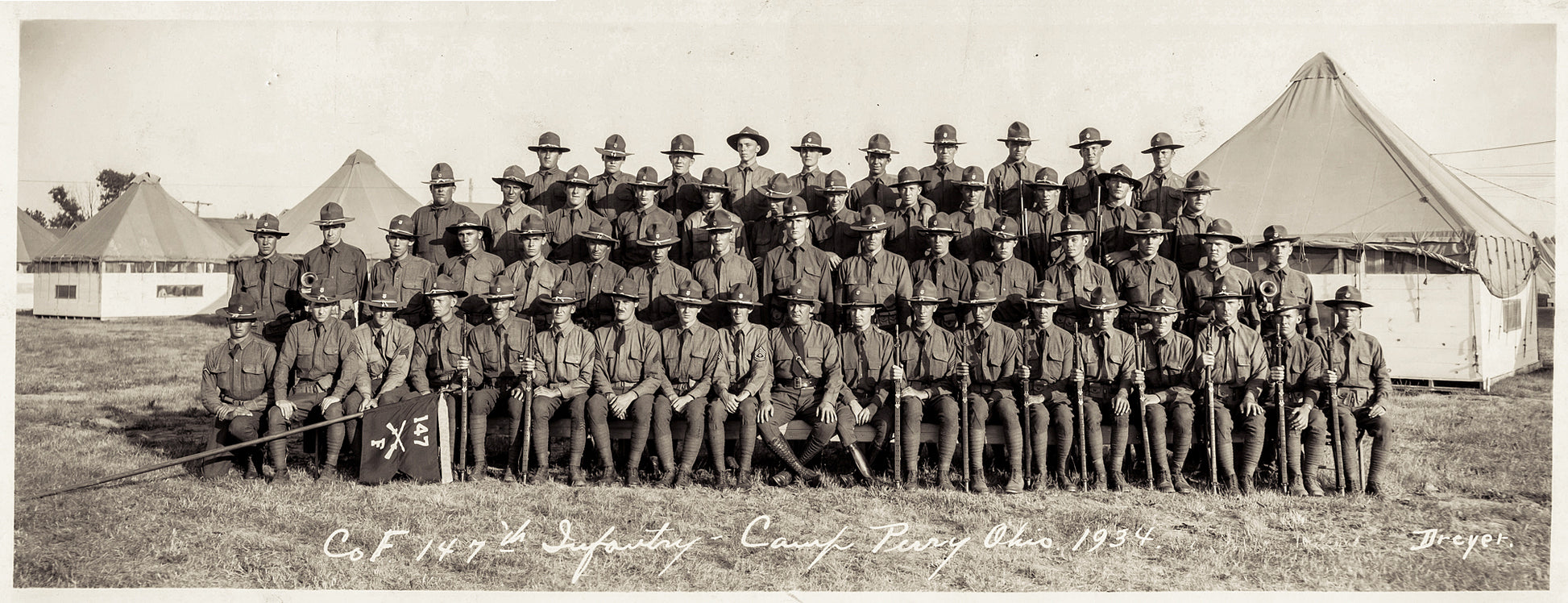 A group photo of Blanchester's 147th, Co. F, National Guard unit. This photo was taken in 1934 at Camp Perry by photographer Dick Dryer.